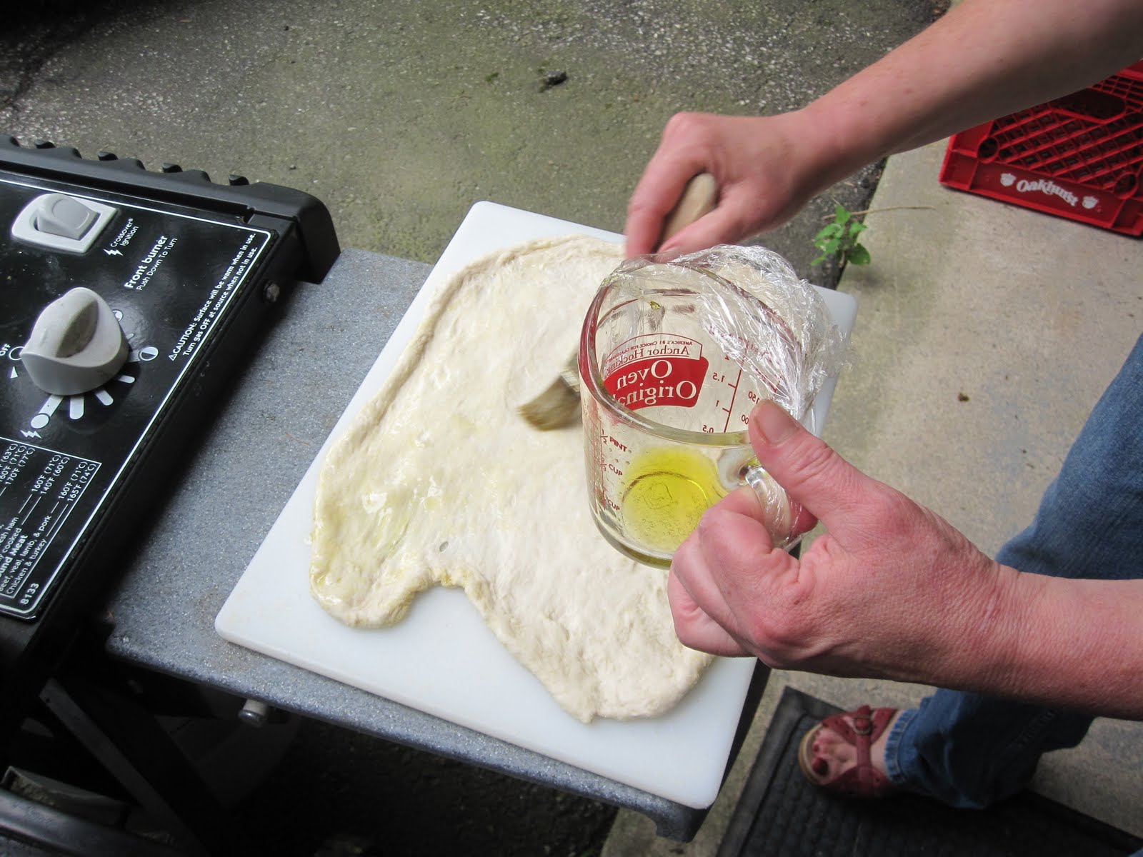 3. Liberally apply extra virgin olive oil to the dough. If you aren’t liberal you can judiciously apply it.