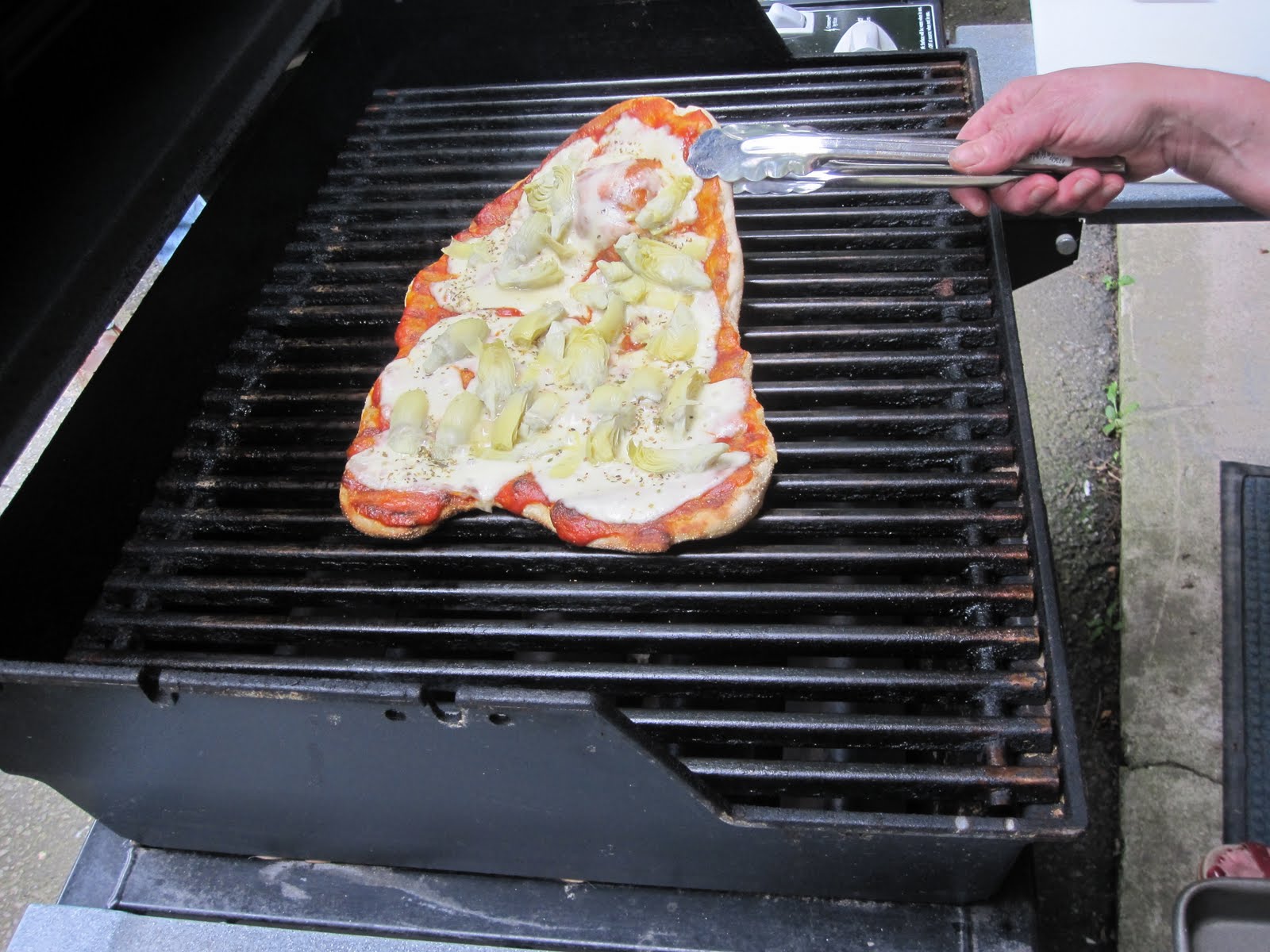 I know it’s super hot outside, but some of us still want pizza. I have heard tell of grilled pizza for quite some time, and even recommended it to recipients of an e-newsletter that I write. Disclaimer – No I don’t always try the recipes I recommend in the other newsletter. I’m sorry! I have things to do! But, the ones I post here, I really do try. Really! For reals! That’s how I get these wonderful photographs!  Back to grilled pizza. Grilled Pizza is one of those things that at first sounds hard to do, and then you read the recipe and say, “Really, that’s all there is to it?” and are immediately skeptical. Then when you see someone do it, you say “Doy! It is totally easy!” Does that make any sense at all? I bet it does to some of you.